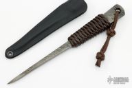 This Spike by GHK was hand forged and selectively hardened from 01 Tool Steel, .228" blade stock, full tang construction with epoxy soaked cord wrapped grip. Comes with a kydex sheath. New from maker.