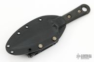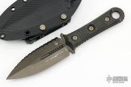 This SBD by Microtech Knives and Borka Blades features a DLC finished double-edged blade with .188" blade stock and 1.556" blade depth, full tang construction, full serration, with carbon fiber scales. Comes with the original kydex sheath, box and papers, dated 11/2021 s/n 402. Excellent Condition.