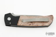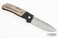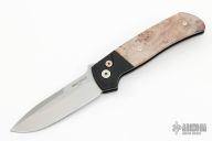 This ATCF Auto by Pro-Tech features a stonewashed Magnacut blade with notched thumbrest. The handle has a black aluminum frame with maple burl scales, tip up 3d milled titanium clip with hidden screws. Comes with original box and papers. Excellent Condition.