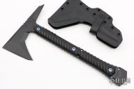 RMJ teamed up with Bawidamann Blades in 2012 to create a lightweight tomahawk that is fast in the hand and different than other tomahawks; thus the Ragnarok was born. Now after several years of making the Ragnarok for Bawidamann Blades, RMJ is now offering a production version. The RMJ Ragnarok is the same tomahawk with angled and textured G10 handles, as well as a Tungsten Gray Cerakote Finish.