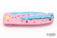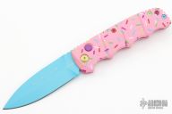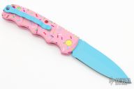 Have you ever been unfortunate enough to have to share a donut? Your plight only gets worse when you find you have to cover your high-speed, low-drag, modified, custom, mirror-edged piece of pocket jewelry in sticky sweetness. What you need is a knife designed from the ground up to go to war with a donut. And although its path to existence was unorthodox, the Dessert Warrior is here! This automatic will snap open before anyone can take more than their half of the donut. The handle is bright pink with sprinkles, and the blade has a candy blue finish, making the knife blend in with the pretty pastries of the shop. Gone are the days of not having the right tool for the job!