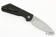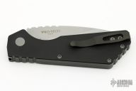 This Pro-Strider PT by Pro-Tech and Strider Knives features a tumble finished blade with notched thumbrest. The handle has a black aluminum frame with blasted hardware and black stainless steel tip up clip. Comes with original box and papers. New from maker at the 2023 CCKS.