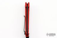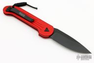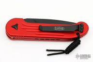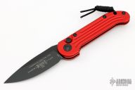 This LUDT by Microtech features a black finished blade. The handle has a red aluminum frame with black hardware and tip down clip. Comes with original box and papers. Dated 11/2022 and s/n 28769. Excellent condition.