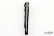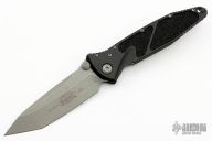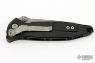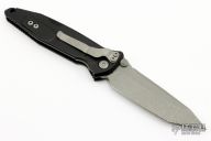 This Socom Elite from Microtech has an Apocalyptic finished tanto blade with dual thumbstuds and notched thumbrest. The handle has a black aluminum frame with non-slip rubber inserts and a tip down stainless steel clip. Dated 10/2022 and S/N 10956. Includes original box and paperwork. Excellent condition.
