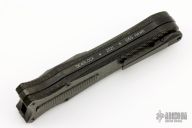 This knife is a Deadlock Model by Grant and Gavin Hawk. It has a black dagger blade. The handle has a lightning strike carbon fiber scales, dlc frame, tip down spring clip, and thumb slide. Comes with Grant and Gavin Hawk set out to create a double action OTF with no blade play.... They did it, NO blade play. Comes with a drawstring bag, tool, and lube. Excellent condition.