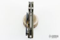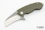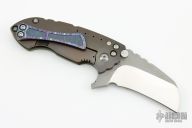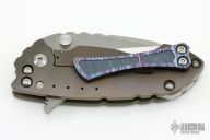 This S-90 framelock flipper from Direware Knives features a g10 scale and satin anodized finished titanium frame and tip up mokti pocket clip. Smooth flipping action that requires no wrist movement with an early and strong lock up, nice detent and blade seating is dead center. Clip can be positioned for tip up or tip down carry. Comes with original box. Has some scuffs and scratches, great condition otherwise.