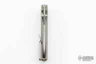 - Stainless steel bent pocket clip screwed to a titanium spacer.