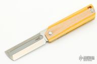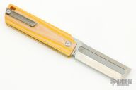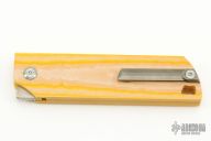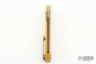 The MaximX (SpaceXi) Flipper version 1 is the LARGE brother of the SpaceX. The MaximX is the second version of the SpaceX that runs on bearings that allows it to almost fly open. Its complexity is in its simplicity. It is sleek and simple, but with a complex 6 face grind with fullers. It is a modern take on your grandfather’s pocketknife. It is a pleasure to hold and use. The Blade is VG-10 high grade knife steel and the handles are Vintage Westinghouse paper micarta. Comes with original box. Excellent condition.