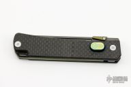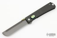 The Jupiter Buttonlock Folder by Darriel Caston has carbon fiber handles with a DLC blade.  It opens as smooth as butter and tucks into your pocket with minimal profile. Has button lock mechanism to unlock the blade. This is a semi-custom - a lot of handwork is involved to make this look fabulous. Comes with original box. Excellent condition.