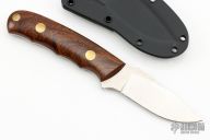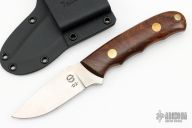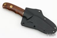 This K-9M Modified Personal Utility by Dozier Knives features a satin finished blade with .129" blade stock and .952" blade depth, full tang construction. The handle has Dyed Curly Oak scales with brass pin and lanyard hole. Comes with kydex sheath. New from maker.