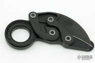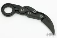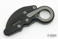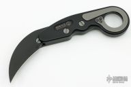 This Morphing Karambit MKV2 Rev.5 by Joe Caswell features a black chisel ground hawkbill blade. The handle is black titanium with tumbled titanium hardware and tip down spring clip. Comes with a cloth pouch. Has a couple light scuffs, otherwise excellent condition.