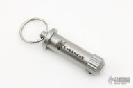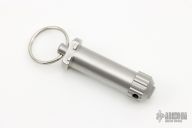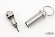 This pocket-size tool kit is a complete disassembly tool for the XM folder. It includes a built-in spanner wrench, which makes it very easy to hold both the wrench and the knife at the same time while making pivot adjustments. The head unscrews from the main body, which contains a precisely machined screwdriver blade that matches the slot on the pivot screw of the XM-18. The head will also hold any standard 1/4″ bit. In the case of the XM-18 it is a 5/64″ hex that works on the handle screws. The crossed drilled hole in the male end is there so you can use it as a “T” handle for extra torque. These are made from 17-4 PH hardened stainless steel, with a bead blast finish. Excellent condition.