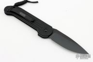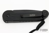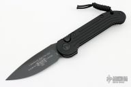 This LUDT side opening automatic by Microtech has a black blade with a standard edge and a black aluminum frame. This tactical version has black fittings. Stainless steel clip. Dated 10/2022 and serial number 28278. Comes with original box and sheath.  Excellent Condition.