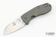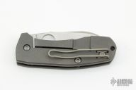This Techno 2 from Spyderco has been reground by Tom Krein and has a satin finish blade with thumb hole. Tumble finish titanium frame. Comes with a Spyderco box and papers, not original to this model. Excellent condition.