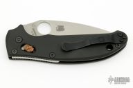 This Spyderco Manix 2 has a stonewashed CPM 15V blade, thumbhole and notched thumbrest. The handle has anodized aluminum custom scales, comes with original brown G-10 scales and steel liners. Lanyard tube in pommel. Includes original box and papers. Black stainless steel reversible tip up clip. Custom copper skull lock release inserts. Comes with original box and papers. Has a couple light scuffs, otherwise excellent condition.