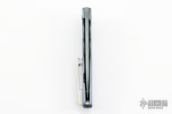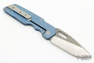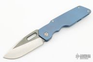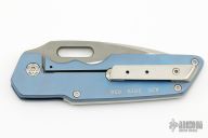 This Mark 1 Medium Folder by A2D Mercantile features a two-tone blade with thumbhole. The handle has a anodized titanium frame with anodized titanium hardware, backspacer and tip up clip. Nice detent, lockup and blade seating. Comes with original drawstring bag.  Dated 2019.  S/N 026.  Light scratches are visible on the blade otherwise the knife is in excellent condition.