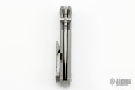 This Chaves Ultramar Redencion Tanto features a satin finished blade with the Chaves logo. The handle is made up of tumbled titanium, skull pocket clip (positioned for tip up carry), and a matching titanium backspacer. Blade is centered when closed, and locks up with no play.  Comes in the original packaging. Excellent condition.