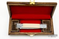 This Picklock Auto by Agasi Hambartsumian of Armenian Doctor Knives features a mirror polished blade with engraving on the flats and spine. The handle has a fully engraved stainless steel frame with engraved stainless steel backspacer, mammoth ivory scales. New from maker. Includes a wooden display case.