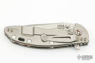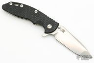 This 3.5" Spanto ground XM-18 from Rick Hinderer features a stonewashed blade with notched thumbrest and flipper. Black G-10 scale and titanium frame and pocket clip. Dual thumb studs and notched thumb rest. Reversible pocket clip. Strong lock up, nice detent and blade seating is center.  Includes the original box and papers. Excellent Condition.