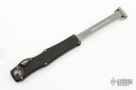 This Halo VI by Microtech knives features a stonewashed blade with fullers. The handle has a black aluminum frame with blasted stainless steel hardware and charging handle. Dated 03/2018 and #267.  Comes with original box, kydex sheath and papers. Excellent condition.