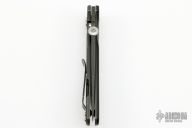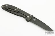 This Firetac by Hinderer features a battle black drop point blade with thumbdisc. The handle has a custom black linen micarta scale,  and battle black finish frame. The pocket clip is reversible. The thumbdisc is removable; there is a lanyard hole. Excellent Condition.
