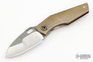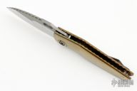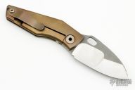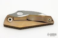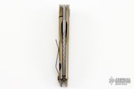 This custom SJ75 Baby Huey by Mick Strider features a milled and anodized titanium frame with file work along back spacer. Multi-ground two-tone blade with file work along spine and thumbhole. Nice function, strong lock up, nice detent and blade seating. Has a couple light scuffs, otherwise excellent condition.