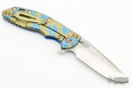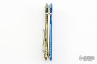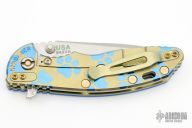 This XM-18 Spanto by Rick Hinderer Knives features a stonewash S45VN finished blade, notched thumbrest and flipper and dual thumbstuds. The handle has a Yellow/blue Chaos Paw titanium frame with a blue G-10 scale, anodized titanium hardware. Clip can be mounted for tip up or down carry. Nice lockup, seating, and detent. Comes with original box, papers and extra hardware. Excellent condition.
