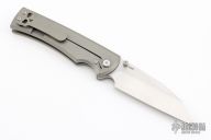 The Chaves Knives Sangre is part of the Ultramar series, a production line made by Reate to bring Ramon's exceptional custom designs to a wider audience. It comes equipped with an aggressive wharncliffe style blade that deploys effortlessly on ball bearings. An ergonomic titanium frame lock handle provides a comfortable grip and absolute blade lockup. The Sangre comes outfitted with a signature Chaves skull pocket clip for secure everyday carry.