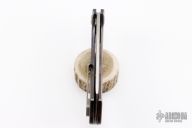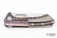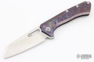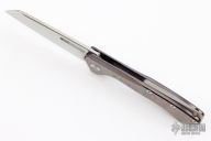 This Revenge from PMP Knives features a satin finished blade with a notched flipper tab. The handle features a ZircuTi frame with a blasted titanium tip up pocket clip and backspacer. Excellent Condition. #105/350