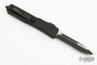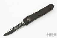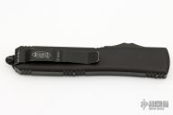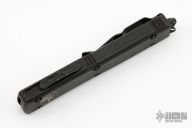 This Ultratech OTF automatic by Microtech features a S/E black finished partially serrated blade. Black aluminum frame with black hardware and stainless steel clip. Glass breaker. Serial number 207631 and dated 07/2021. Comes with original box and papers. Has some light scuffs, otherwise good condition.