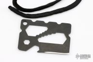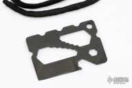 "Made of CPM S30V, this mini credit card tool features six SAE wrench sizes: 1/4, 5/16, 3/8, 7/16, 1/2, and 9/16. Also includes five Metric wrench sizes: 6, 8, 10, 12, and 14mm. Bottle opener doubles as a 5/16 wrench. A 1/4 hex driver opening and screwdriver tip is also included as well as a small cutting edge." DLC finish. Includes original bag and card. Excellent condition.