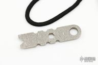 The Atwood Larva Tool is a basic pocket pry bar made from S30V steel with raw bar texture. Features include a simple prying end with wire stripper V notch and a 1/4" hex wrench. Decorative side scallops provide extra grip. The Larva makes for a handy little minmalist key fob or pocket accessory. Comes with original bag and card. Excellent condition.