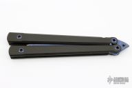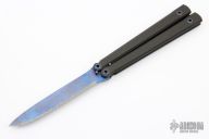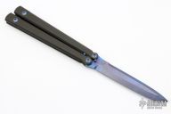 This XL Balisong from Warren Thomas features a fingerprint anodized titanium chisel ground blade with carbidized edge. The handles are carbon fiber with titanium spacers. Includes a zippered case. Excellent condition.