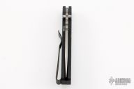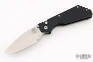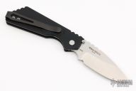This Pro-Strider PT by Pro-Tech and Strider Knives features a satin/tumble finished blade with notched thumbrest. The handle has a black aluminum frame with black hardware and black stainless steel tip up clip. PR1 #968. Includes the original box and papers.  Excellent Condition.