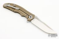 This 0609 RJ Martin flipper by Zero Tolerance features a satin finished blade with stonewashed flats, notched thumbrest and flipper. The handle has a milled and anodized titanium frame with a tip up reversible stainless steel clip. Rides on bearings, nice detent, lockup and blade seating. S/N 6330. Has a couple light scuffs, otherwise excellent condition.