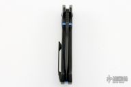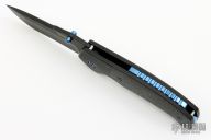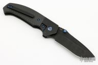 This is his production model Diesel produced by Reate. It is built to the highest quality standards of quality, using premium materials and methods. The blade is black tumble finished and rides on ceramic caged bearings with a ceramic detent. Also, this knife features a stainless steel lock insert for longevity of use. Black tumbled titanium frame with carbon fiber scales and anodized titanium hardware. Comes with original box. Has some scuffs, otherwise excellent condition.