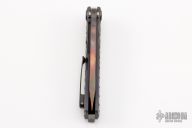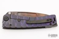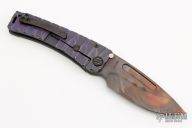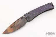 This Marauder by Medford Knives features a vulcan finished drop point blade with fullers. The handle has a twisted predator finished anodized titanium frame with PVD D2 skull crusher at the butt, PVD hardware and tip up clip. Nice detent, lockup and blade seating. Comes with original box, case and papers. Excellent condition.
