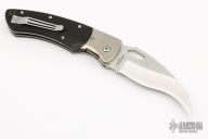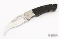 This Black Talon by Cold Steel features a satin finished hawkbill style San Mai blade with swedge and notched thumb ramp. The handle is comprised of titanium bolsters and black G-10 scales. Includes a tip up stainless steel pocket clip. Has some scratches, otherwise good condition. Includes the original box. This model has been discontinued.