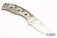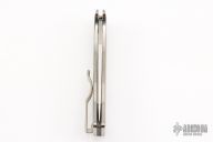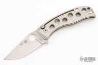The PITS (Pie in the Sky) Folder is based on Mike Read's popular non-locking folder, which has been designed to comply with British knife laws. It has a full-flat ground N690Co steel clip point blade and precision-machined skeletonized titanium handle that aids in providing texture for grip. In addition, the handle features integral split spring arms to form the knife's unique slip-joint mechanism. Mike Read designed this knife to be a tough, hard-use folder and the combination of the lower blade guard with the integral spring act to prevent unintended closure. The PITS Folder includes Spyderco's deep carry wire clip for reversible tip-up carry. Includes the original box and papers.  Excellent Condition.
