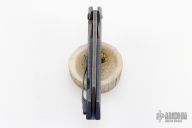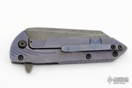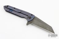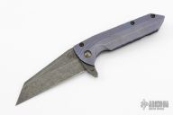 This framelock flipper from Gavko Knives features an acid wash/tumble finished blade with a flipper. The handle has milled anodize and tumble finish titanium scales and a titanium clip positioned for tip up carry. Nice detent, lockup and blade seating. Comes in a soft pouch. Excellent condition.
