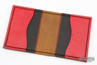 This Bi-fold Wallet by Garza Leather Goods is 100% handmade. The outside is red lizard skin with matching pockets on the inside. Comes with original box. New from maker.