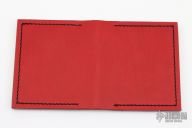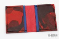 This Bi-fold Wallet by Garza Leather Goods is 100% handmade. The outside is Italian red leather with red camo and blue pockets on the inside. Comes with original box. New from maker.