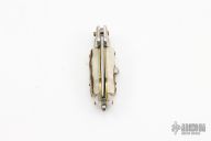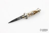 This auto features a spear point blade with a false top edge. Nickle silver guard and rear bolster and stag scales, brass liners. Nice function, strong firing. Has some light scratches, otherwise excellent condition.