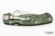 This Paramilitary 2 Linerlock Folder from Spyderco has a satin finished clip point blade with thumb hole and notched thumb rest. Handle has black/green Fat Carbon scales with stainless steel liners and stainless steel 4-way reversible clip. Comes with original box and papers. Excellent condition.