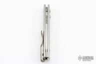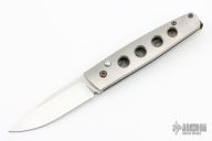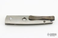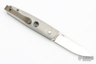 This auto by Zhu Homer features a spear point tumble finish blade with notched thumbrest. The handle has a milled titanium handle with bent titanium tip up clip. Comes with original box. Excellent condition.