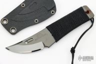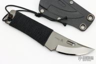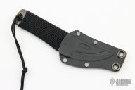 This Chou neck knife by Rockstead features a DLC coated blade with 1/8" blade thickness and 7/8" depth. The handle is black cord wrapped. Kydex neck sheath. Wicked sharp. Includes original paperwork and bag. Excellent condition.
