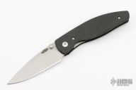 This Atom Linerlock by Three Rivers features a stonewashed blade with dual thumbstuds. The handle has carbon fiber scales, titanium liners and tip up reversible clip. Nice detent, lockup and blade seating. Comes with original box and papers.  Excellent condition.