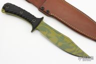 There are two very distinct offerings, a Black and Gray Urban Camo version, and a Jungle Camo version with Multicam Light Green and Multicam Dark Green, both have Black G10 handle scales. The Urban camo model includes a black leather sheath with gray stitch, the Jungle Camo version includes a brown leather sheath with green stitching. This listing is for the Urban Camo version.