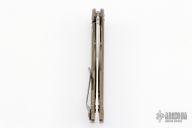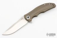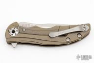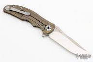 This 0609 RJ Martin flipper by Zero Tolerance features a satin finished blade with stonewashed flats, notched thumbrest and flipper. The handle has a milled and anodized titanium frame with a tip up reversible stainless steel clip. Rides on bearings, nice detent, lockup and blade seating. S/N 7491. Excellent condition. Comes with original box and papers.