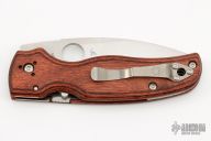 This Shaman PLN by Spyderco features a satin spear point blade with notched thumb and finger rests, thumbhole. The handle has rosewood scales, inlaid stainless steel liners and a stainless steel backspacer, 4-way reversible stainless steel clip, lanyard hole at the butt. Comes with original box and papers. Excellent condition.